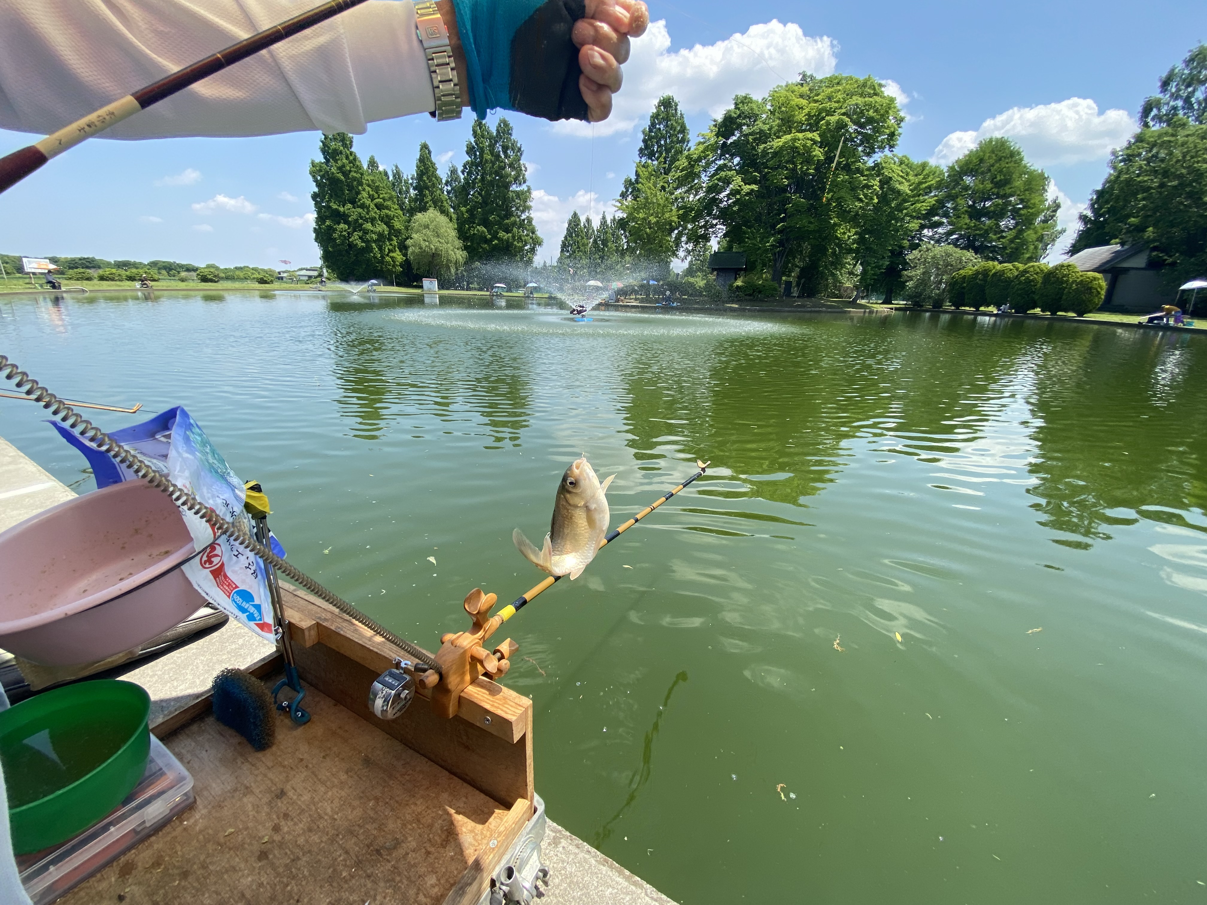 公園には弁天池があり釣り師で溢れていました🎣